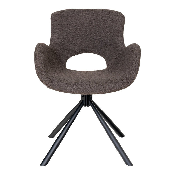 Deze Amorim eetkamerstoel biedt een stijlvolle en comfortabele zitmogelijkheid met een modern, draaibaar design. Met een paddestoelkleurige, met bouclé beklede zitting en een zwart metalen draaivoet voegt deze stoel een vleugje eigentijdse elegantie en functionaliteit toe aan elke eetkamer, keuken of kantoorruimte. Deze stoel wordt geleverd in een set van 2.