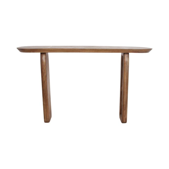 De moderne Bullnose console tafel is gemaakt van massief mangohout en herkenbaar aan het organische ontwerp met afgeronde vormen aan zowel de zijkanten als de onderkant. Deze verfijnde vormgeving geeft de tafel een zachte, eigentijdse uitstraling. Verkrijgbaar in twee kleuren: bruin en zwart.