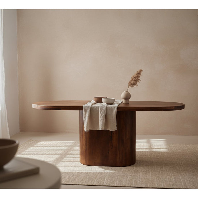 De Bullnose langwerpig Eettafel Combineert Een Strakke, Organische Vorm ontmoette de opwarming Uitstraling Van massief MangoHout. Het ovale blade heft afgeronde hoeken en een robuste centrale poot, Wardoor de tafel zowel stevig als stijlvol oogt. Deze Tafel is Verkrijgbaar in Drie Maten: 180 cm, 200 cm en 240 cm.