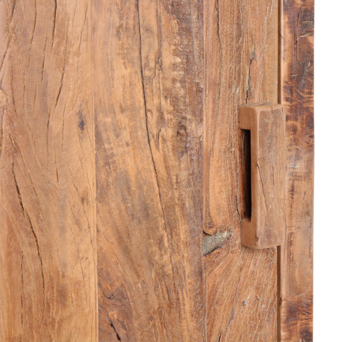 De smalle kast biedt veel opbergruimte zonder groot te ogen en past daardoor in vrijwel elk interieur. Het unieke gerecyclede hout en de natuurlijke kenmerken maken elk exemplaar anders, waardoor het een stijlvolle en karaktervolle toevoeging is aan je woonruimte.