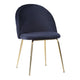 De Geneve Dining Chair heeft een zacht blauw fluwelen zitting en metalen poten in messinglook. Deze stoel biedt comfortabele zitplaatsen en een stijlvolle, eigentijdse uitstraling, geschikt voor diverse eetruimtes. Deze stoel wordt geleverd in een set van 2.