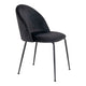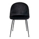 De luxe zwart fluwelen bekleding en strakke zwarte metalen poten van deze stoel zorgen voor een verfijnde en comfortabele eetervaring. Het ontwerp voegt een vleugje moderne elegantie toe aan elke kamer.