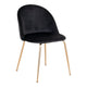 De Geneve Dining Chair heeft een zachte zitting van zwart fluweel en metalen poten in messinglook. Deze stoel biedt comfortabele zitplaatsen en een stijlvolle, eigentijdse uitstraling, geschikt voor diverse eetruimtes. Deze stoel wordt geleverd in een set van 2.