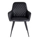 De strakke zwarte afwerking en gewatteerde details van deze stoel maken hem tot een stijlvolle en comfortabele aanvulling op elke eethoek. De PU-lederen zitting is gemakkelijk schoon te maken en te onderhouden, terwijl de metalen poten stevige ondersteuning bieden.