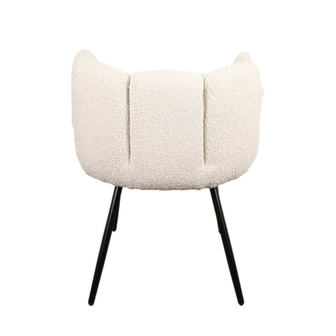 De High Five eetkamerstoel is vernoemd naar de omrande rugleuning bestaande uit vijf vingers. Dit zeer stijlvolle ontwerp is bovendien uiterst comfortabel en een geweldige aanvulling op uw huis. Het is verkrijgbaar in zeven trendy fluwelen kleuren: Zandwit (Velvet), Zwart (Velvet), Koper (Velvet), Grijs (Velvet), White Pearl (Boucle), Toffee (Boucle) en Beige (Chenille). Met een zithoogte van 48 cm past hij aan elke eettafel. Productafmetingen: Breedte: 60 CM Diepte: 53 CM Hoogte: 75 CM Zithoogte: 48 CM Armhoogte: 75 CM Belangrijke informatie: Geschikt voor dropshipment Montage vereist Originele verpakking 2 stuks / 1 dozen Niet brandvertragend Productmaterialen: Zitting: Multiplex en metalen frame / Schuim 25Kg/M3 / Stof Poten: Zwart gepoedercoat aluminium