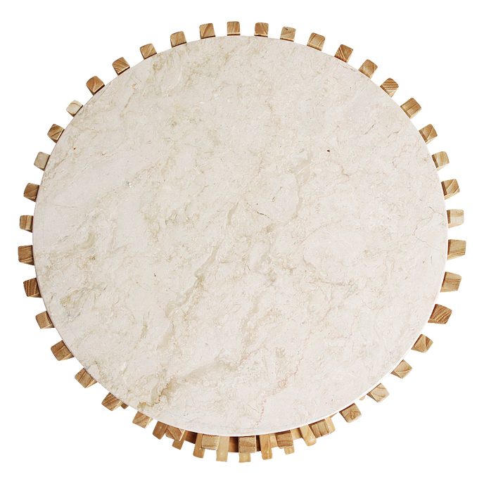 De tafel is gemaakt van duurzaam Sungkai hout uit Indonesië, bekend om zijn lichte gewicht en kenmerkende lichtgele tot lichtbruine kleur. Het blad is vervaardigd uit hoogwaardig marmer, dat direct een luxueuze en natuurlijke uitstraling toevoegt aan je interieur.