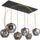 Deze hanglamp bestaat uit 6 smoke glazen kelken. Het glas is van donker smoke glas, hierdoor geeft dit een warme sfeer wanneer deze aan staat. In combinatie met warme lichten wordt deze lamp een ware eyecatcher in huis!De afmetingen voor deze lamp zijn als volgt: Plaat 50x120 cm Glazen 3*26+3*29 cm Kabels Verstelbaar tot 120cm De lamp wordt geleverd met plaat en 6 glazen kelken. Voor deze lamp zijn lampen met een E27-fitting geschikt. Maak je lamp compleet door de bijbehorende lampjes te bestellen. Deze kan je vinden onder het kopje Lampen > Lampjes.
