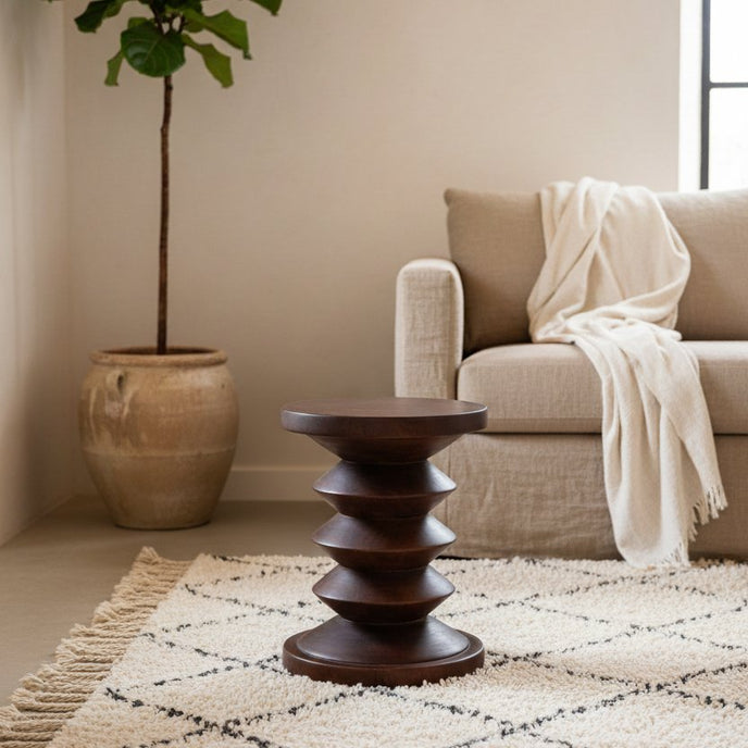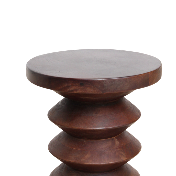 Deze kruk is gemaakt van duurzaam mangohout en heeft een moderne, stijlvolle uitstraling. Het meubel kan dienen als krukje, plantentafel of bijzettafeltje voor drankjes en koffie. Door het unieke ontwerp voegt het karakter en warmte toe aan elk interieur, of het nu gaat om een woning, restaurant, hotel of project. De kruk/bijzettafel is verkrijgbaar in verschillende vormen, waardoor je ze leuk kunt combineren en een speels geheel creëert.