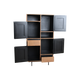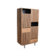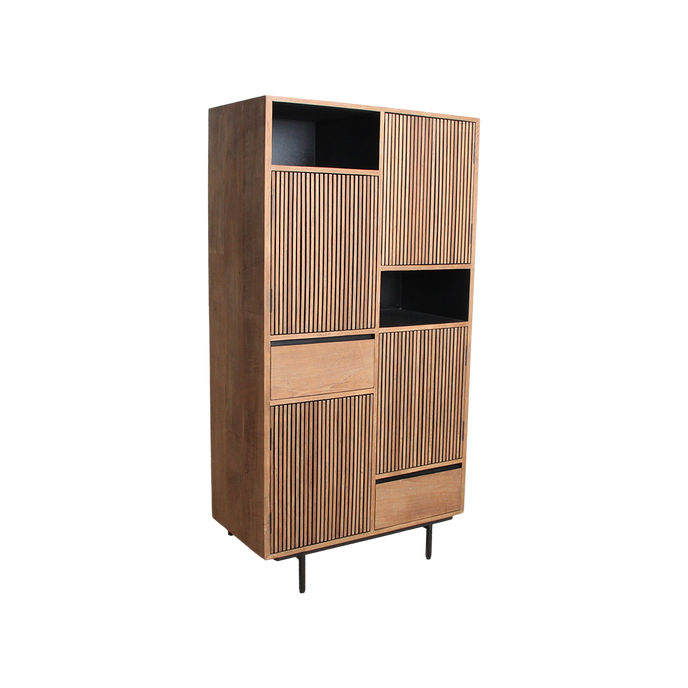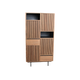 Deze kast combineert een strak, modern design met duurzame materialen. De combinatie van warme houttinten en zwarte details geeft een tijdloze uitstraling, terwijl de praktische compartimenten zorgen voor overzicht en gebruiksgemak. Een stijlvolle en duurzame toevoeging aan elk interieur.